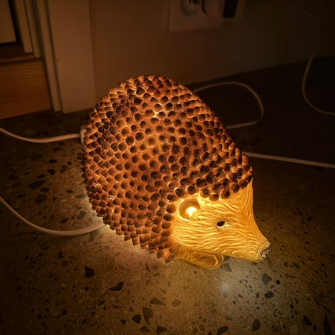 Lampe med plastjuveler som bryter lyset vakkert
