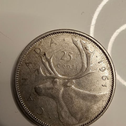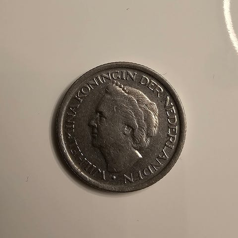 Nederlandske 25 cents mynter fra 1954 og 1958.
