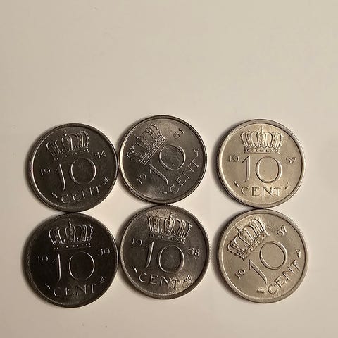 Nederlandske 25 cents mynter fra 1954 og 1958 100 kr stk