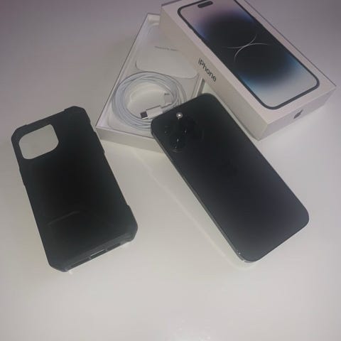 IPhone 14 Pro Max, 256 gb. Knust bak, men har ingen praktisk betydning, og har ingen innvirkning på kamera, ytelse etc. Bra batterikapasitet, og generelt pent brukt.