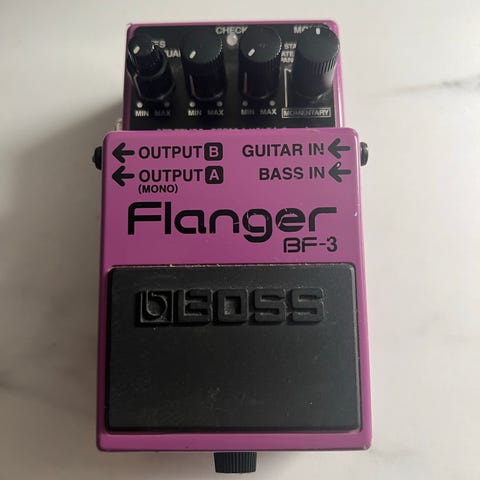 Legendariske Boss BF2 i meget god stand. Bare et svakt hint av statisk støy i RES-knappen. Bortsett fra det, alt vel. Flanger i vei.