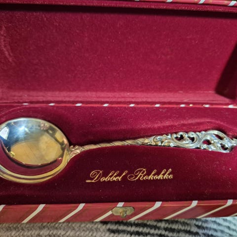Dobbel rokokko Sølvskje i eske