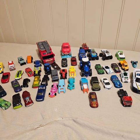 Boss bil- mangler lokk i enden og speil på ene siden. Den er gøy leke med. Lager lyd: 150kr