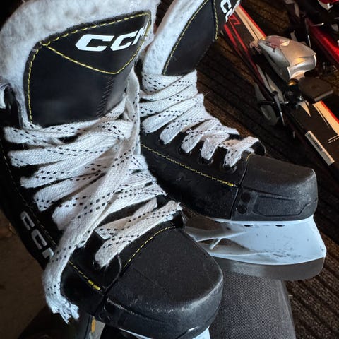 CCM Ishockeyskøyter i størrelse 34 for barn. Skøytene er svarte og egnet for ishockey. De har standard design og materialer for barneskøyter til ishockey. De er kun brukt 3-4 ganger. Selges pga at de nå er for små.