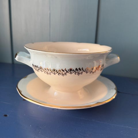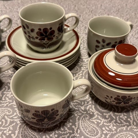 Tilstand: Brukt vintage. Normal aldersrelatert krakelering i glasuren. Ingen synlige sprekker eller store skader.
