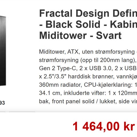 Fractal lydisolert kabinett selges. Følger med 8 skuffer til ssd/hdd + 2 lommer bak til ssd.