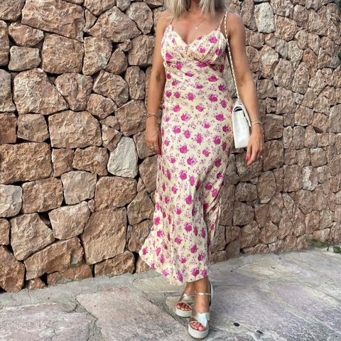 Kjole fra Pia Tjelta med dyp v-hals. Kjolen er laget av luksuriøs lett silke og litt elastan for perfekt passform og komfort. Ny pris kr 4599,-