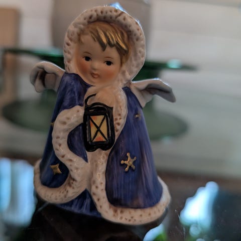 Herlig 13 cm høy syngende engel fra Candy design. Notebok i hånda. 😊