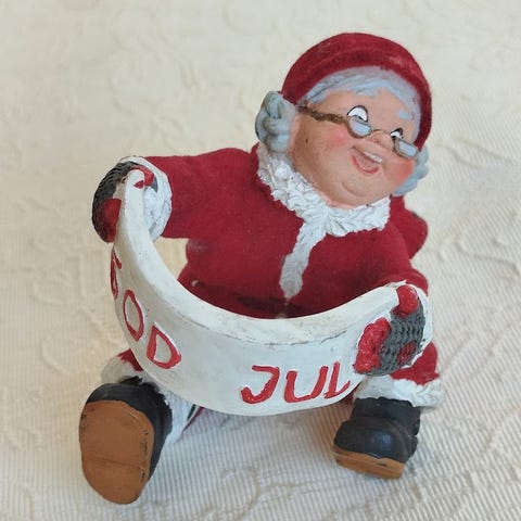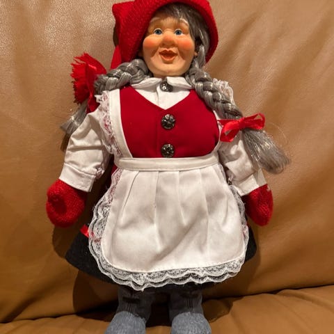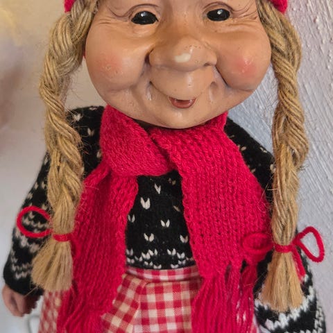 Ikke Haslenisse, men kopi. Ca 36 cm. Nissene og nissebarna savner voksen nissemor. Vil gjerne se bilder før jeg kjøper.