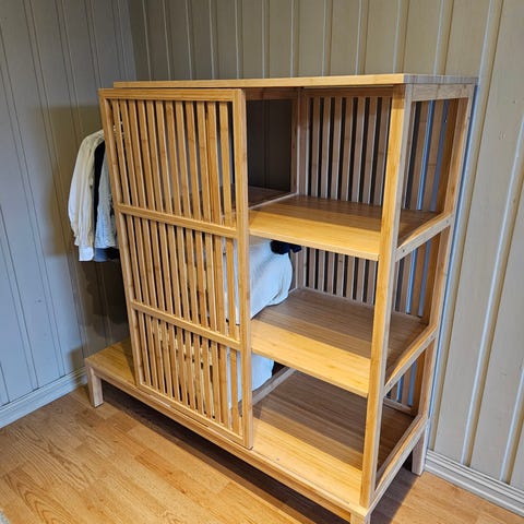 Selger grunnet flytting må hentes, det er heis. Dobbel kommode med 2 stativ til å montere oppå for oppheng av klær