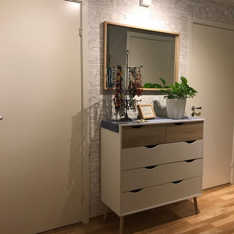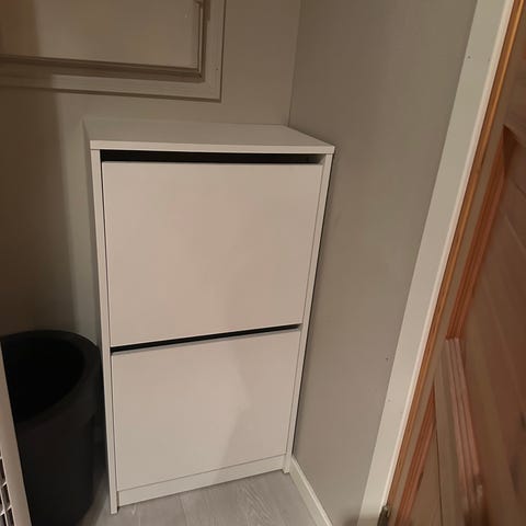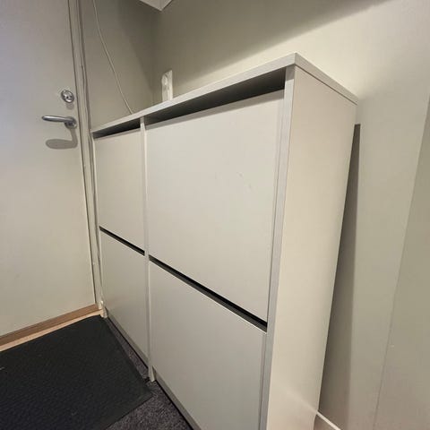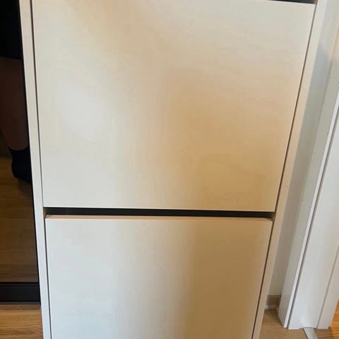 Pent brukt, sjarmerende skoskap med tre rom fra Tvilum, kjøpt på Møbelringen. Moderne retrostil, passer perfekt på soverommet eller i gangen. Tre utfellbare rom gir mye oppbevaring, og gjør det enkelt å holde orden på skoene. Stilrent møbel i moderne retrostil med utskjæringer som håndtak og runde ben. Produsert i Danmark.