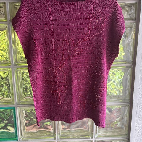 Krisp topp, lilla topp, drapert topp, waterfall neckline, festtopp, viskose-look, stretchy topp, elegant topp, feminin topp, UK 14, L dame, bluse lilla, festklær dame, jobbantrekk, casual chic, asymmetrisk topp