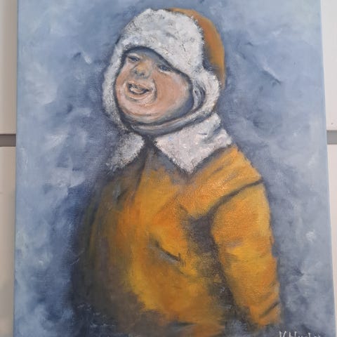 Signert kunsttrykk portrett av kvinne i ramme
