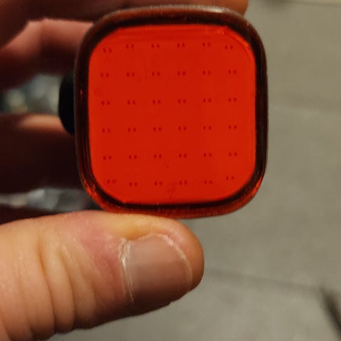 Six operating modes: 100% brightness - 50% brightness - 25% brightness - 2 flash modes - off.