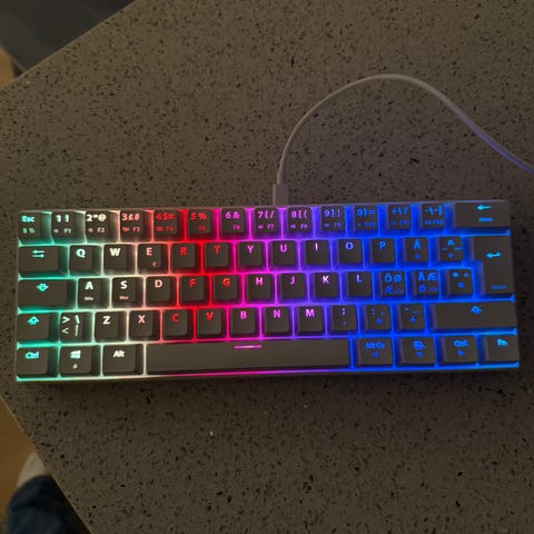 Gaming headset med kabel, svart og rød.