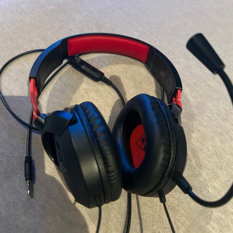 hodetelefoner med kabel i svart og rød farge. Passer for generell bruk med justerbar hodebøyle og øreputer. Brukte den for playstation. Funker fint og selges fordi jeg har kjøpt nye