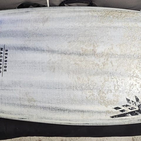Deflow Duette Twin surfefinne i hvit og svart, designet for å forbedre surfebrettets stabilitet og manøvrerbarhet.Brukt kun en gang.