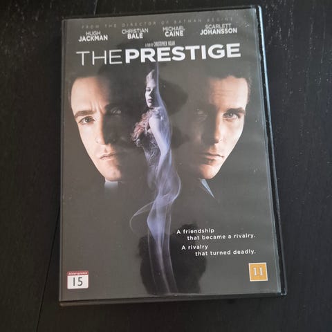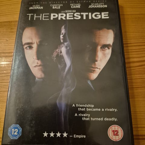 The Prestige DVD film med originalt omslag og DVD-plate. Inneholder filmen The Prestige med skuespillere som Hugh Jackman, Christian Bale, og Michael Caine. Norsk tekst.