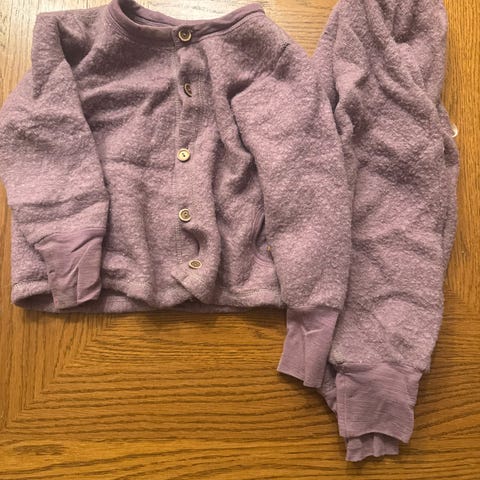 Ikke for tykk ullgenser med en tilsvarende ullbukse.