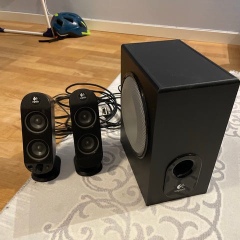 Logitech subwoofer høyttaler i svart farge. Designet for å gi forbedret basslyd i lydsystemer. Har tilkoblingsmuligheter på baksiden for enkel integrering med andre lydkomponenter.
