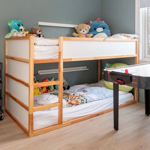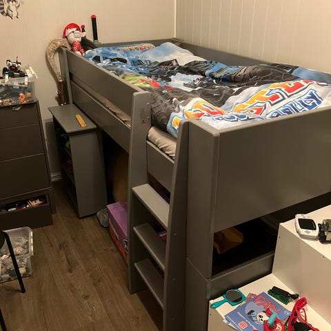 Passer til barn og gir plass under sengen til oppbevaring, skrivebord eller møblering.
