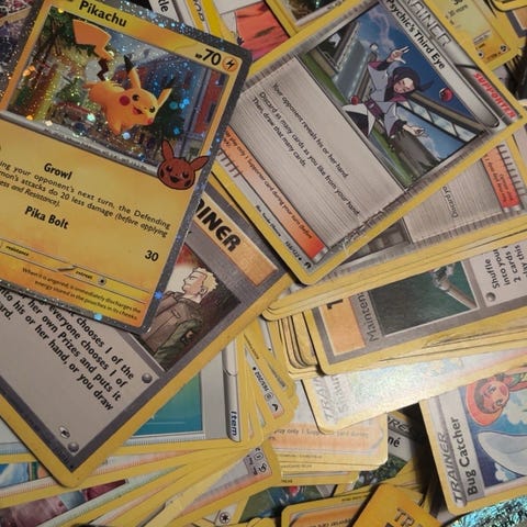 Pokémon samlekort i forskjellige sett og utgaver. Kortene varierer i type og motiv, inkludert karakterer og spesialkort. Egnet for samlere og spillere.