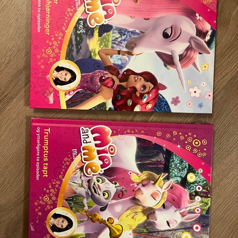 Barnebokpakke med 9 stk bøker. Noen er nesten ikke åpnet, andre er mer brukte.
