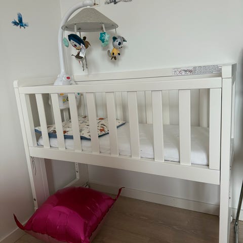 Er noen merker i hver ende, men dette har jeg løst med en sengekantbeskyttelse.