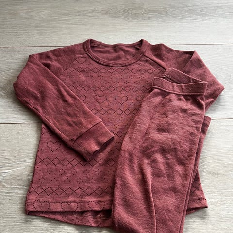 Selger et ullundertøy sett i str 6 år fra Tom og Trine. 100% merinoull. Rosa farge.