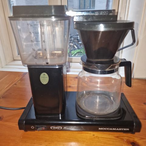 Nyrenset Moccamaster kaffetrakter i svart. Alt fungerer som den skal og er i god stand, inkludert ledningen. Ingen sprekker i glasskannen. Lokk til kannen medfølger.