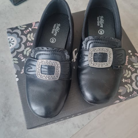 Pent brukte bunadssko str 29 med lav hel. Merke folklore.