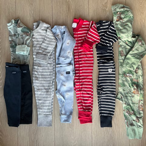 De to blå heldressene er i ull, samt den ene bodyen fra Molo med bamser på.