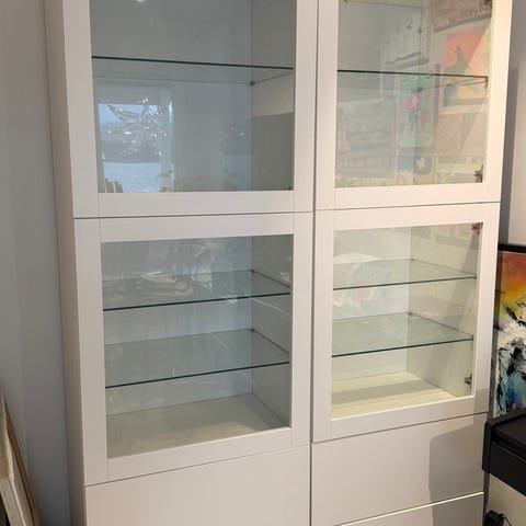 Fin vegghylle med god plass for pynt. Ca 55cm bred og 57 cm høy. Enkel å feste i veggen med to skruer.