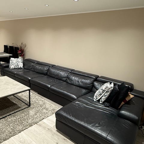 Den var fra Finn.no, men den er solid og veldig behagelig å sitte i. Mål er 180x240 i hele lengden. Dypden 80cm og sittehøyde er 40 . Må ses