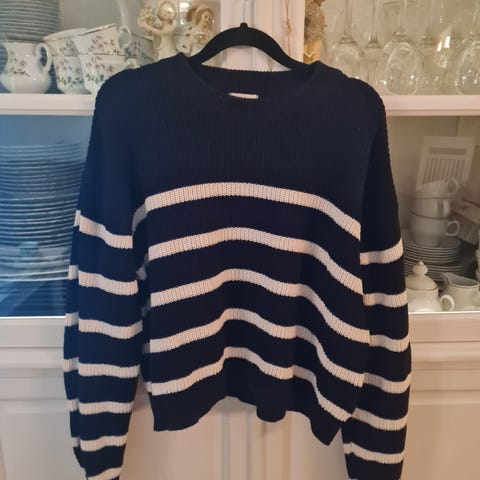Pent brukt hvit Zara bomullsgenser med svarte striper i str. S selges da den ikke lenger blir brukt.