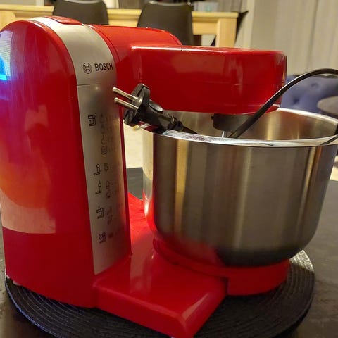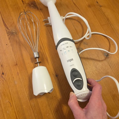 Bosch stavmikser med tilhørende hakker. Effekt på 300 watt. Hvit farge. Passer til matlaging og hakking av ingredienser.