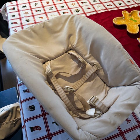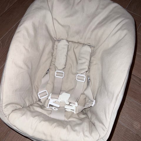 Selger et Stokke New Born-sete med ekstra trekk og tilhørende lekestang.