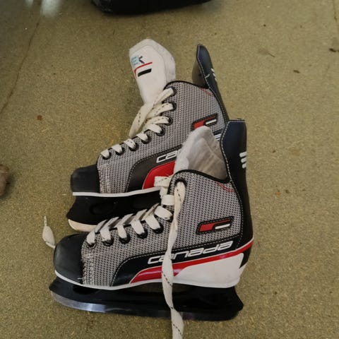 Skøyte par nr 1 øverst er i strl; 36, nr 2 strl 34, nr 3 (med grønt); justerbar strl fra 29-32, par nr 4 strl 34, par nr 5 strl; 36.