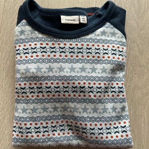 Uåpnet ulloverdel med bomull innside og ull utside i str 98/104.