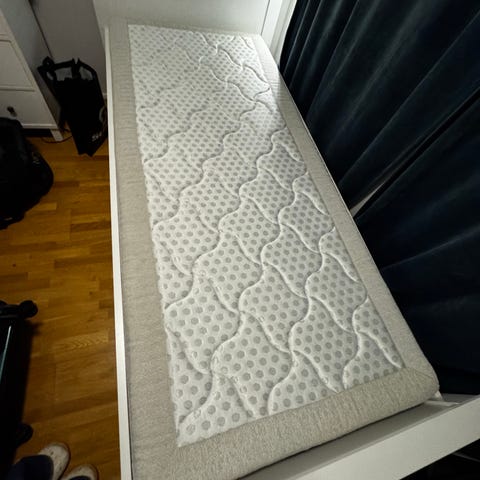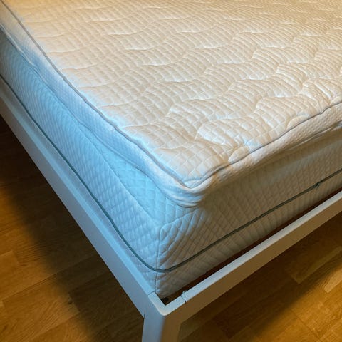 Rammemadrass med overmadrass. 120 cm. Dessverre få bilder.