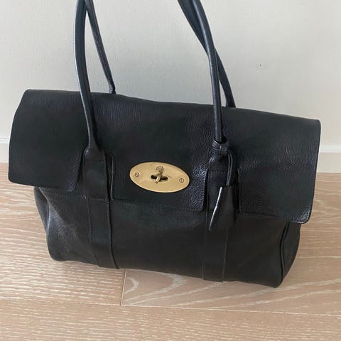 Mulberry skulderveske i svart lær for dame. Vesken har en kjedelignende skulderrem og en frontlomme med lås. Designet for daglig bruk og passer til ulike anledninger. 25 x 19 cm. Kan sende!