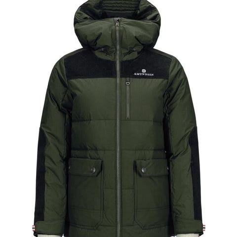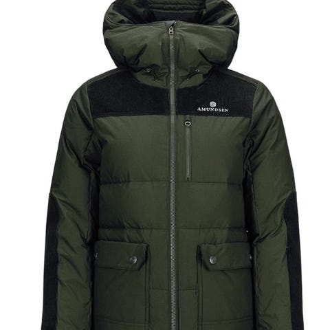 En deilig og varm dunjakke fra fra Amundsen Sports. Fylt med resirkulert dun og et yttermateriale i organisk bomull. Jakken har to patcher med doble lommer for god håndvarme, med stilig kordfløyel konstraster.