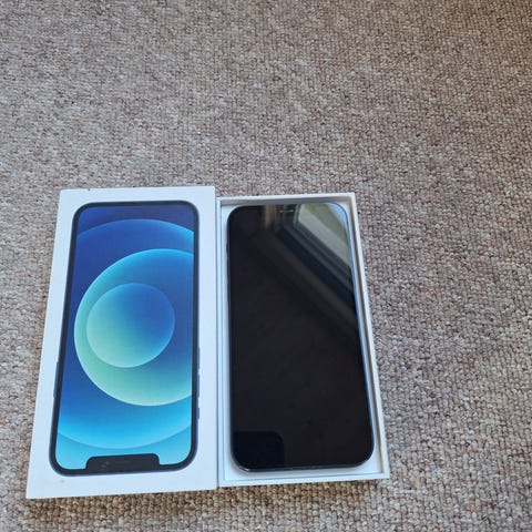 iPhone 12 med 64 GB selges. Telefonen har alltid hatt glassbeskyttelse og deksel på seg. Batterikapasiteten er på 77%. Da telefonen var helt ny, mistet jeg den i bakken. Den knuste ikke, men det ble to grønne flekker, slik siste bilde viser. Det har aldri vært noe problem for funksjonen, annet enn at de grønne flekkene er synlige når telefonen er påslått. De var irriterende i begynnelsen, men så glemte jeg de var der. Kom gjerne med bud!