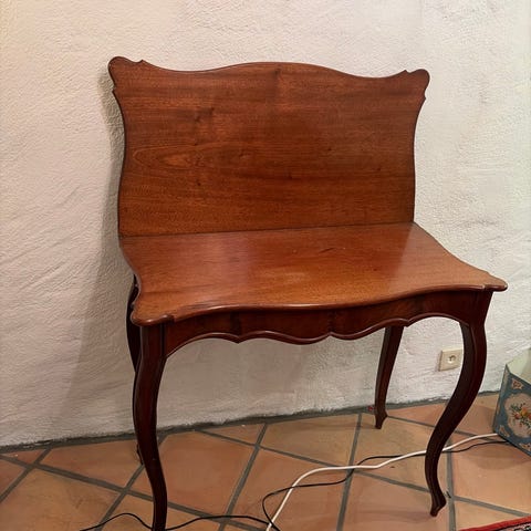Stolen er trukket om i senere tid, tillegg er på treverk og overflate godt over av møbelsnekker og fremstår som solid.