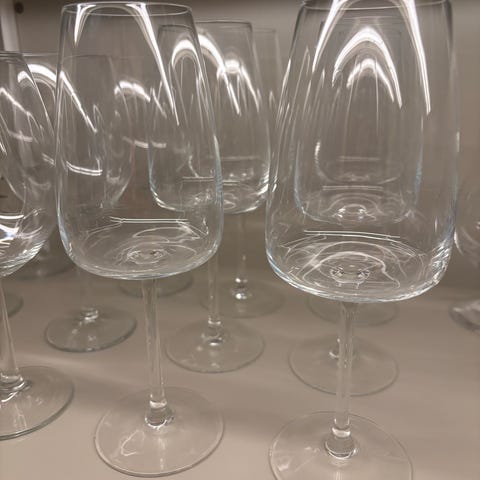 Glassene er pakket ut og har stått i skapet siden. Aldri brukt.