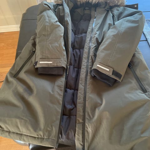 Zizzi boblejakke og boblebukse i størrelse L for kvinner i grønn farge. Plaggene består av jakke med avtagbar hette og bukse. Pent og lite brukt.