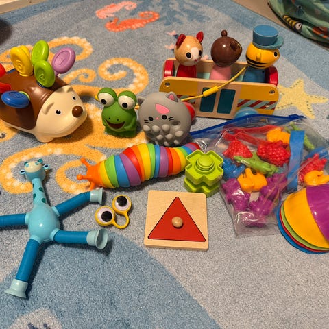 Inneholder to treleker og flere leker fra forskjellige merker. Selges samlet eller hver for seg 😊