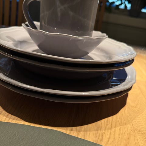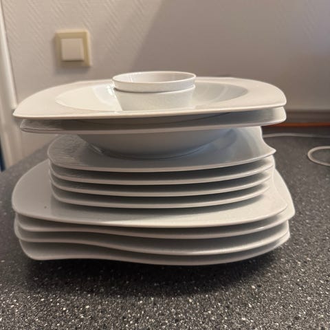 Kjært servise som vært med i mange år. Noen deler har måttet kaste inn håndklet på veien, og det som gjenstår er: