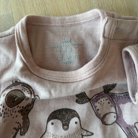 Pent brukt ullbody med bambus fra Hust & Claire i str 68.