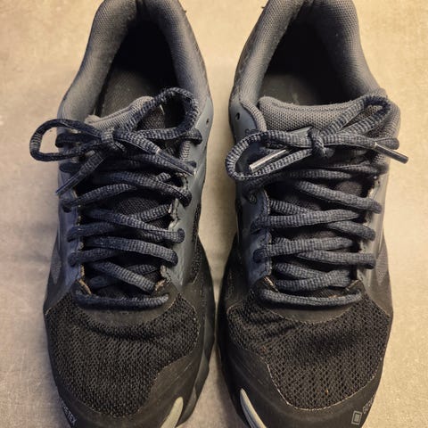 Det er slitasje/rift i ytterstoffet på innsiden av hver sko (én side per sko – se bildet). Skoene er merket GTX, men pga. slitasjen kan jeg ikke garantere full vanntetthet. Selges derfor rimelig.